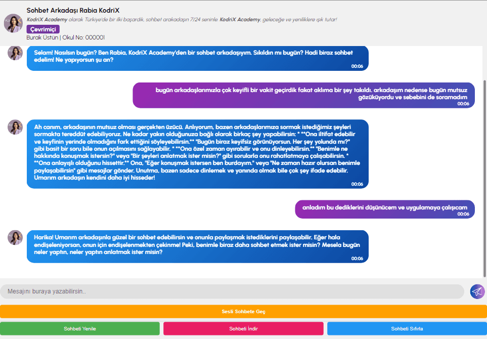 İçini dökmek istediğinde ya da sadece sohbet etmek istediğinde Rabia KodriX seni bekliyor. Şimdi başla, birlikte konuşalım!